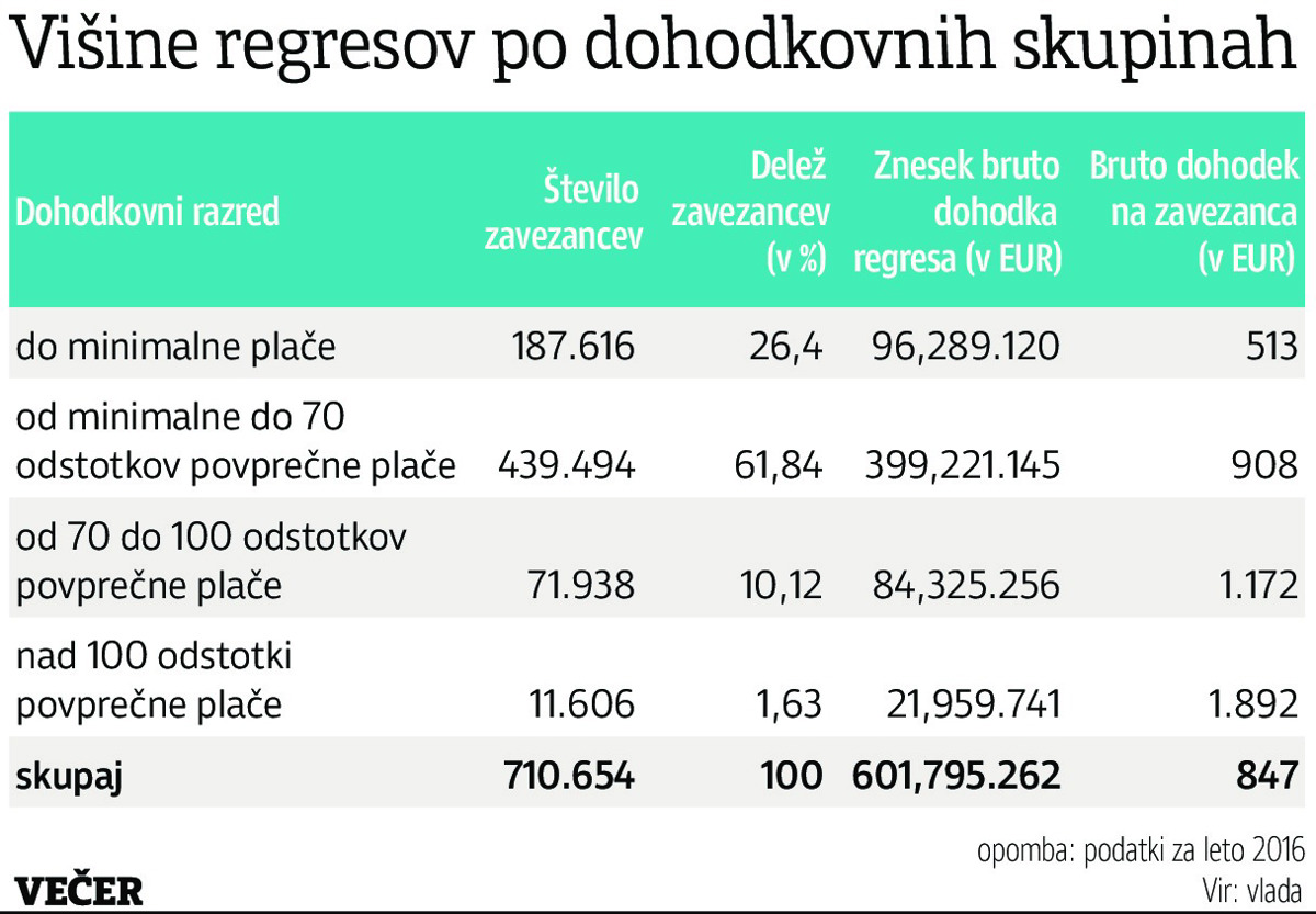 Koliko dohodnine bi vrnili na tisočaka regresa