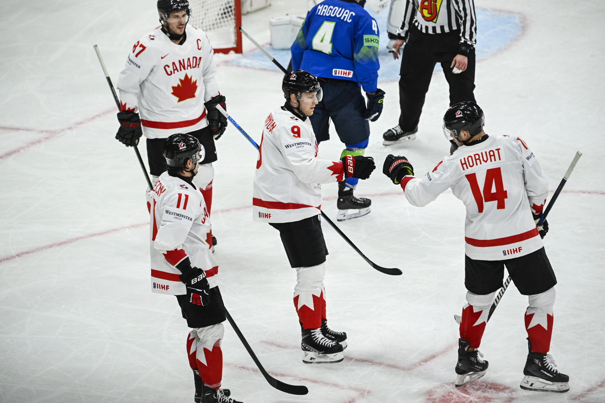 Slovenci so s Kanado klonili z 0:4, potem ko je bila po solidnih prvi in zadnji tretjini zanje usodna predvsem igra z igralcem manj v drugi tretjini, ko so njihovi tekmeci dosegli tri zadetke. Vratar Lukaš Horak, sveži slovenski državljan, je zbral 40 obramb. Že v prvem delu je imel precej dela in ga tudi dobro opravljal, saj je Kanada pritisnila in izbrance Eda Terglava stisnila pred njihov gol.