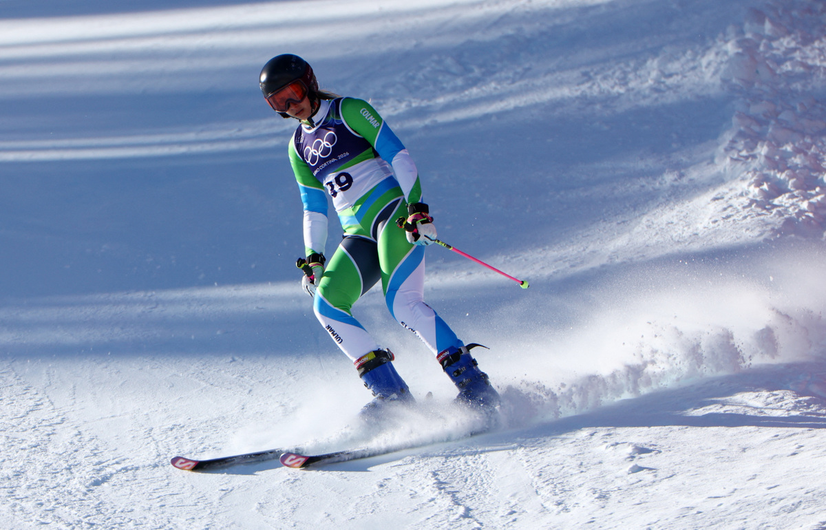 Po odstopu izkušene Bucik Jogan je za najboljši slovenski dosežek na veleslalomu v Cortini d'Ampezzo poskrbela olimpijska debitantka iz Nabrežine. Zamejka v slovenski reprezentanci Caterina Sinigoi je z zaostankom 6,96 sekunde končala na 31. mestu, Nika Tomšič pa je z zaostankom 8,39 sekunde končala na 36. mestu od 54 tekmovalk, ki so pravilno izpeljale obe vožnji.
