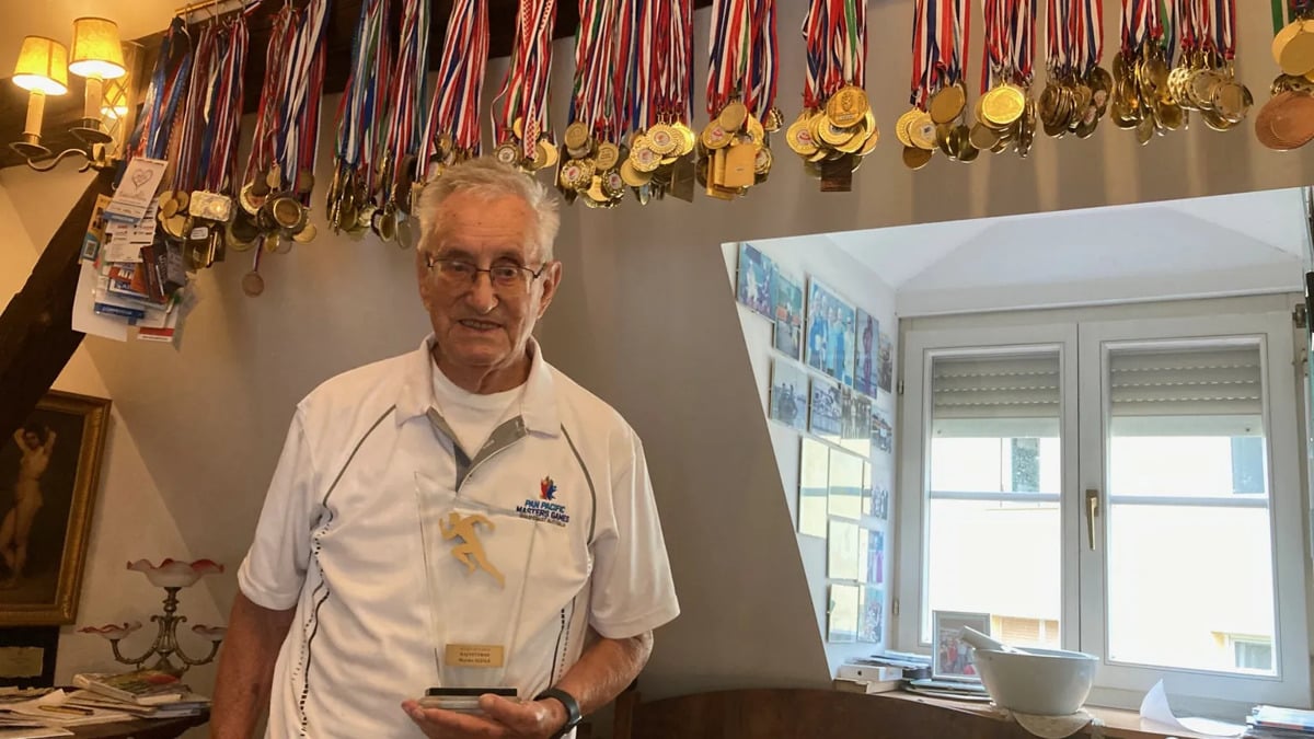 Medtem ko metalec diska Kristjan Čeh naskakuje medalje na največjih tekmovanjih, njegov klubski kolega pri Atletskem klubu HyperCUT Ptuj Marko Sluga osvaja medalje na veteranskih prvenstvih. Ga morda še ne poznate? 90-letnik, ki stanuje na Kamniški ulici v Mariboru, je leta 1960 za las zgrešil uvrstitev na olimpijske igre v Rimu (deseteroboj), zdaj pa mejnike - tako starostne kot rezultatske - postavlja v veteranski atletiki.