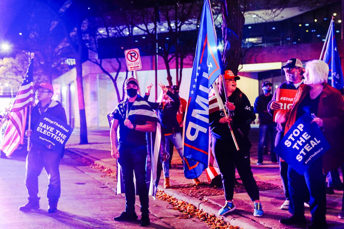 "Ne smemo dovoliti, da bi kdorkoli utišal naše volivce ali proizvedel rezultate. Naše številke so se skrivaj čudežno zmanjševale. Skušajo potvoriti volitve in tega ne smemo dovoliti," je dejal Trump, ki se od volilne noči razen preko Twitterja ni oglasil.