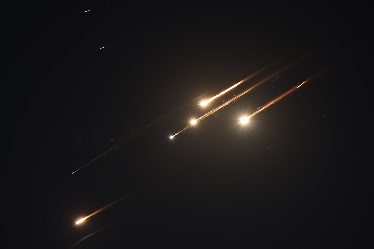 Iranske rakete in izraelska protizračna obramba nad Jerzulamom.
