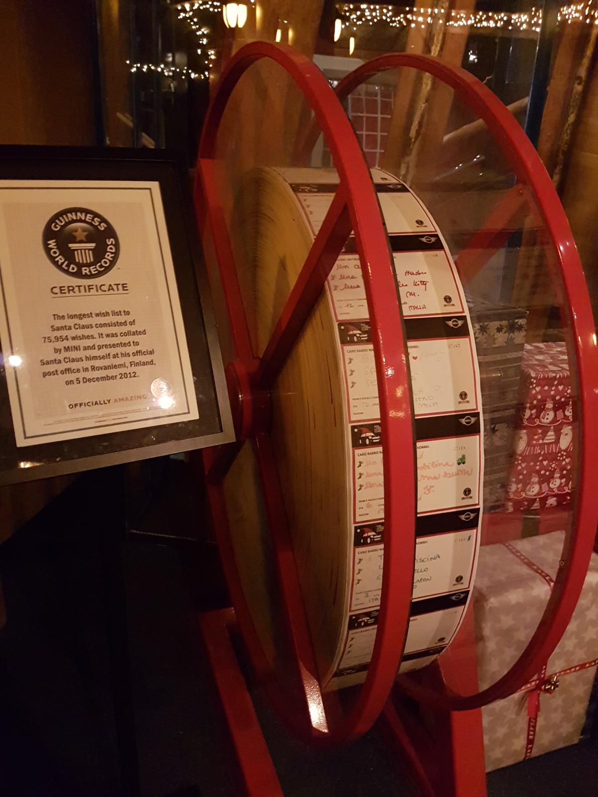 Na poti do Božička čaka obiskovalca najprej nekaj "ledenih plošč", ki jih vsakdo premaga brez večjih težav, po temačnem prehodu pa se na koncu predora nahajajo vzorno zapakirana darila z velikim pentljami, obiskovalcu pa se pogled ustavi na ob darilih postavljeni ogromne role papirja. Kaj papirja, gre za rolo božičnih pisem, ki je 5. decembra 2012 nastala kot najdaljši spisek otroških želja na svetu in je vpisana tudi v Guinnessovo knjigo rekordov. V Božičkovi pošti so tedaj drugo za drugim nanizali 75.954 lističev ter jih izročili dobremu možu. Za željami tiktaka ura, ki odšteva čas do božiča, njen mehanizem pa je dobro viden, ko se povzpnete po stopnicah navzgor proti Božičkovi dnevni sobi. V njej bradati mož ves dan dobre volje čaka na vse, ki ga želijo obiskati in se z njim fotografirati.