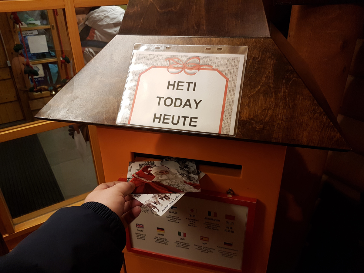 V času našega obiska se je temperatura ozračja spustila na 9 stopinj Celzija pod ničlo. Pravzaprav sploh ni bilo hladno, nam povedo domačini. Vseeno smo se odločili pogreti v poštnem uradu, kjer je bila pol ure pred zaprtjem še izjemna gneča. Starši z vsega sveta so s svojimi otroci pisali voščilnice, lepili znamke ter svoje spiske želja kot po tekočem traku metali v posebni nabiralnik. Še dobro, da je bila rdeča škatla tako zelo velika, sicer bi se gotovo napolnila. Vendar, pozor! Previdni bodite, da boste za pošiljanje izbrali pravi nabiralnik. V enem se namreč zbira božična pošta, ki bo naslovniku dostavljena tik pred božičem, medtem ko je drugi namenjen redni pošti. Ne glede na to, za katero dostavo se boste odločili, pa bo vaša voščilnica opremljena s prav posebnim, uradnim žigom. Naročeno voščilnico pa bo Božiček lastnoročno poslal na želen naslov.