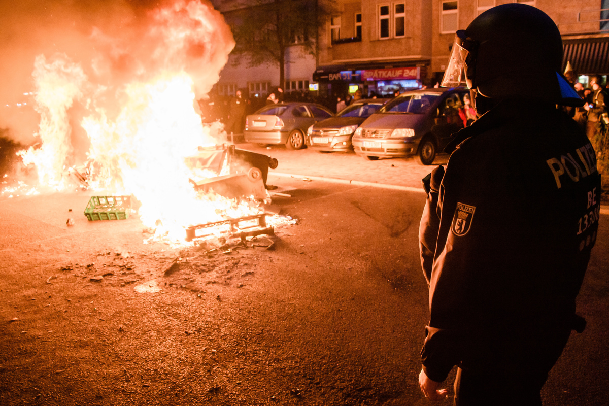 V nemški prestolnici je ob 1. maju potekalo več kot dvajset protestov, ki se jih je udeležilo približno 30.000 ljudi. Večinoma so potekali mirno, zvečer pa so se razmere zaostrile, ko so varnostne enote razgnale shod privržencev skrajne levice. Ti niso upoštevali protikoronskih ukrepov, na policijo pa so metali steklenice in kamenje ter zažigali zabojnike za smeti, je sporočila policija.