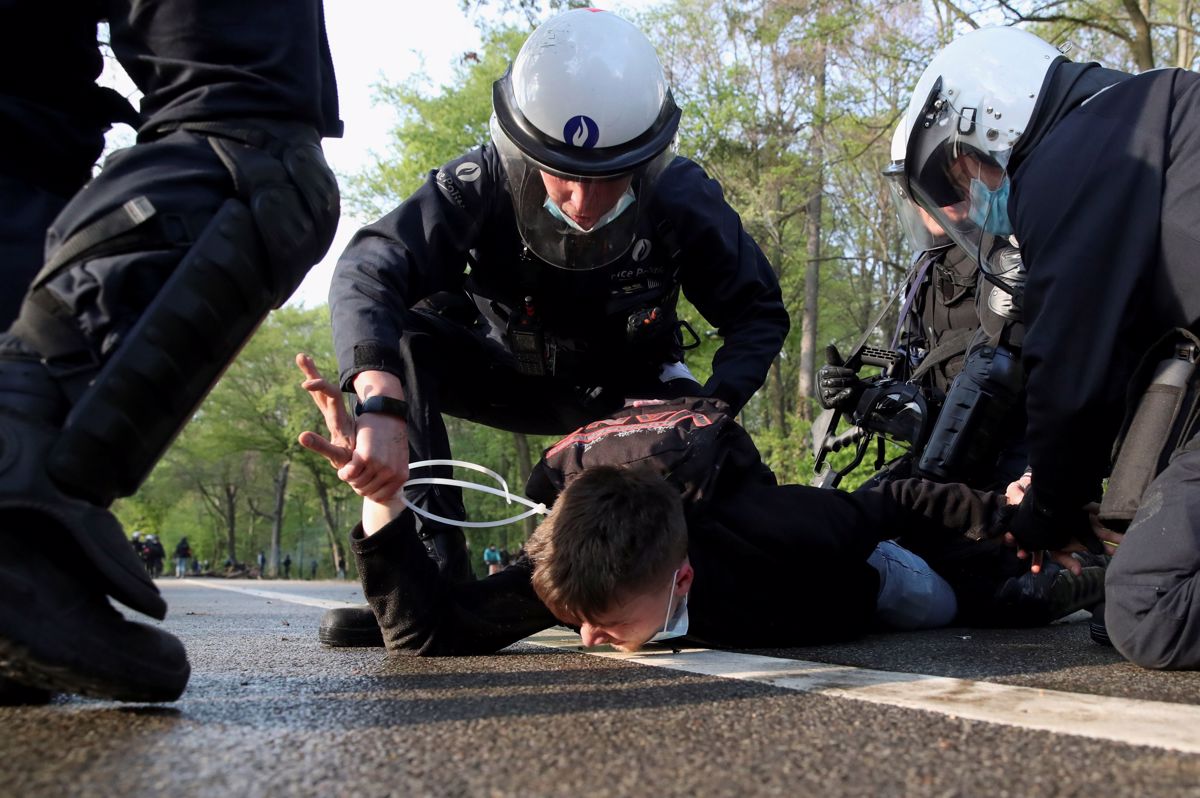 V Bruslju na shodu proti ukrepom za zajezitev virusa več kot 130 pridržanih