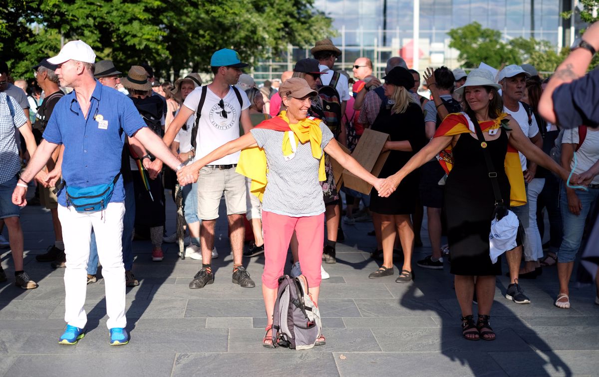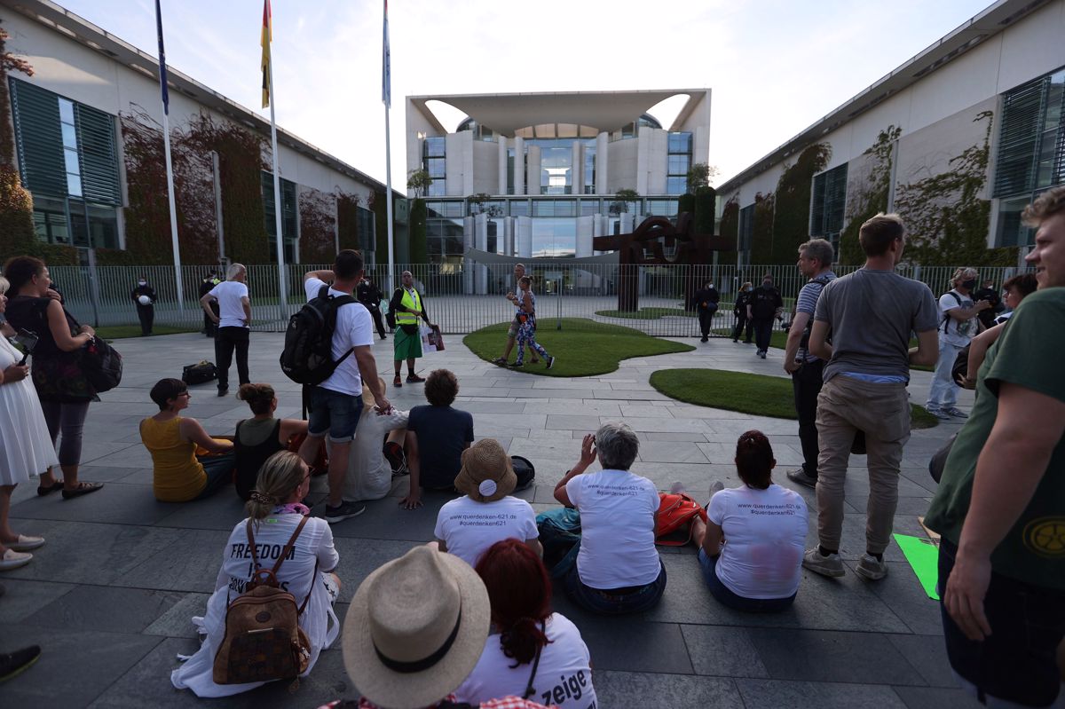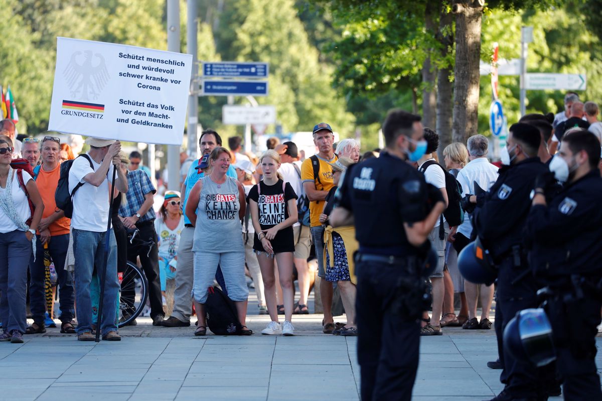 Protestniki, med katerimi so le redki nosili zaščitno masko in ohranjali priporočeno razdaljo, so se začeli zbirati na ulici Unter den Linden in bližnjih ulicah s slogani "svoboda" in "upor". Številni so nosili zastave krajev, od koder so prišli, ter zmerjali ljudi, ki so upoštevali omejitvene ukrepe.