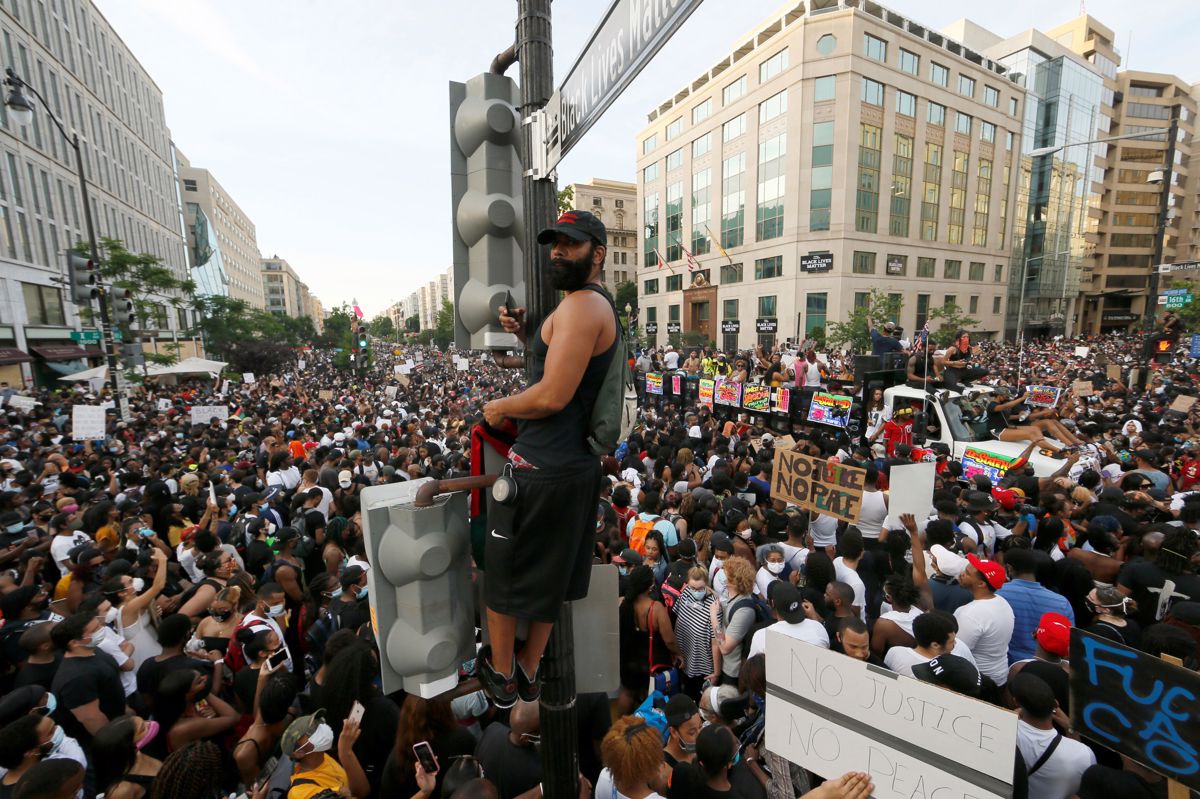 V Washingtonu so množice protestirale tudi v okolici Bele hiše, ki je dodatno zagrajena z novim krogom žičnate ograje. Natančnih številk o udeležencih ni, ocene pa se gibajo od 100.000 do milijona ljudi. Protestniki so se zbrali tudi na na novo preimenovanem trgu Črna življenja štejejo nedaleč od Bele hiše, za kar je poskrbela županja Muriel Bowser, ki je dala z geslom gibanja proti policijskemu nasilju nad temnopoltimi popisati tudi bližnje ulice.