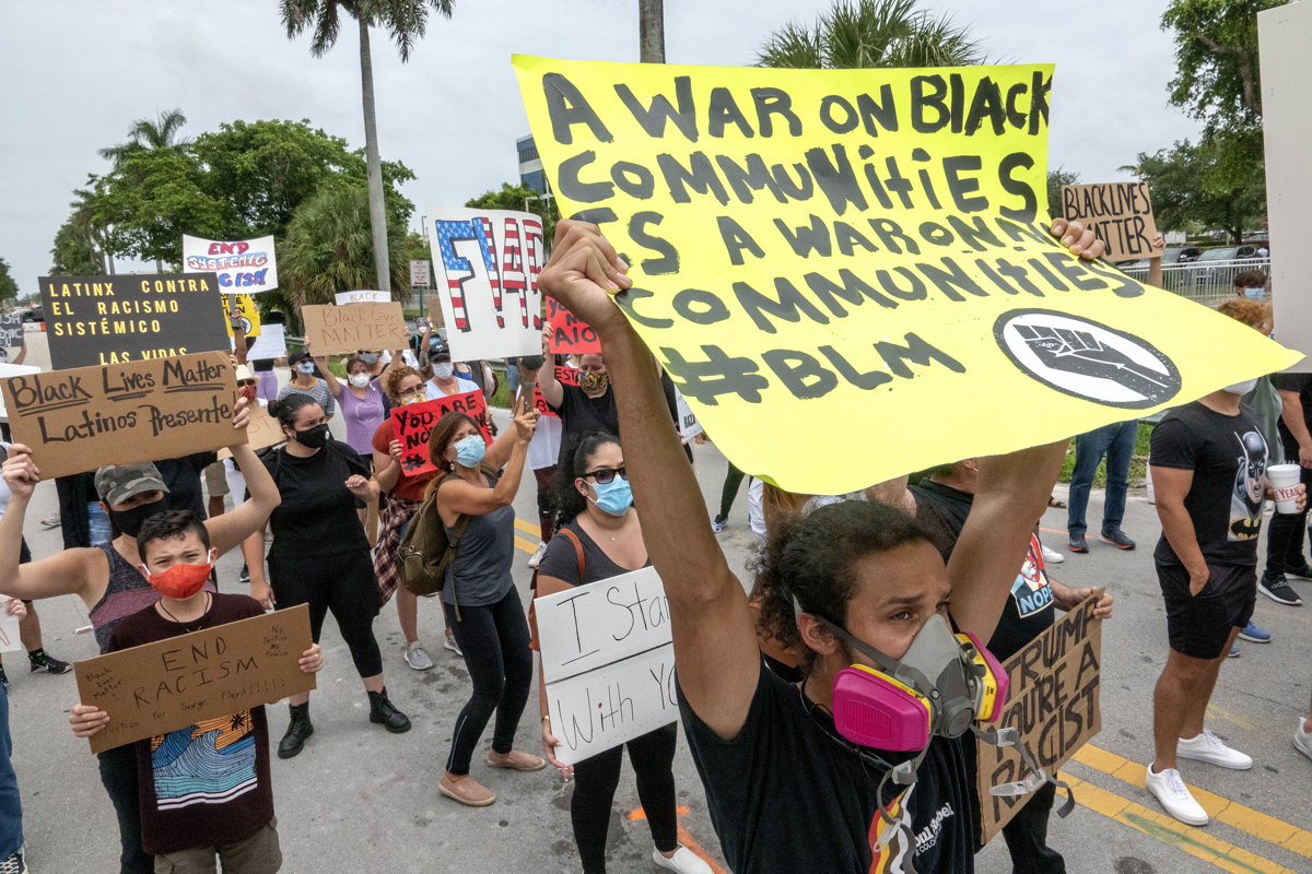 Predsednik ZDA Donald Trump se razen tvitanja, da je protestnikov malo, in kritik medijev, ki da jih razpihujejo, ni oglasil v javnosti. Ostaja pa pri pozivih, da je potrebno ukrepati tudi z vojaško silo.