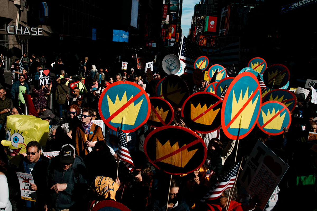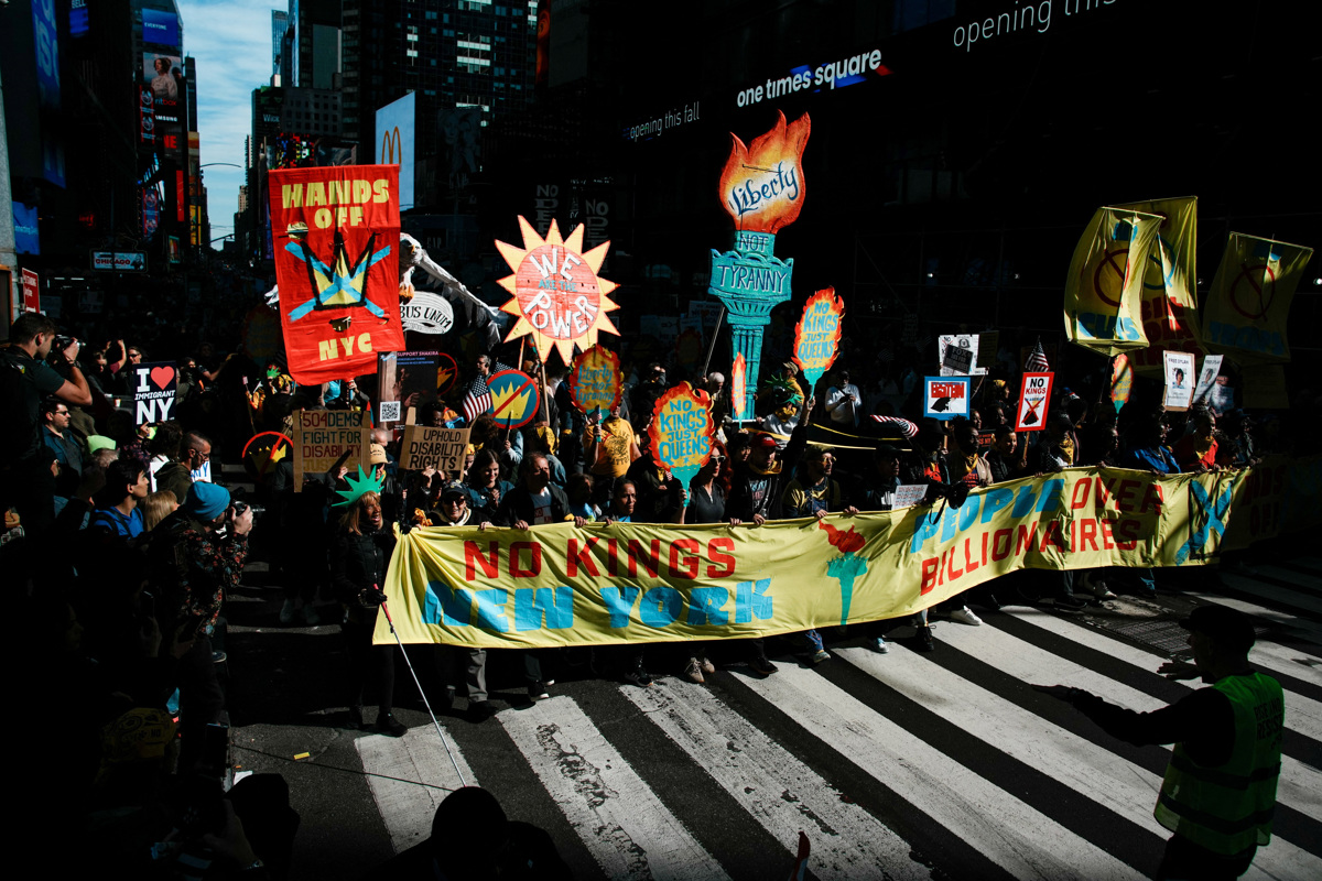V New Yorku se je danes začel protestni shod proti politiki predsednika Donalda Trumpa, prvi od več kot 2500 shodov, ki so napovedani od vzhodne do zahodne obale ZDA. Na Times Squaru se je na protestnem shodu, ki ga organizira gibanje No Kings (Brez kraljev), zbralo več tisoč ljudi, poročajo tuje tiskovne agencije.