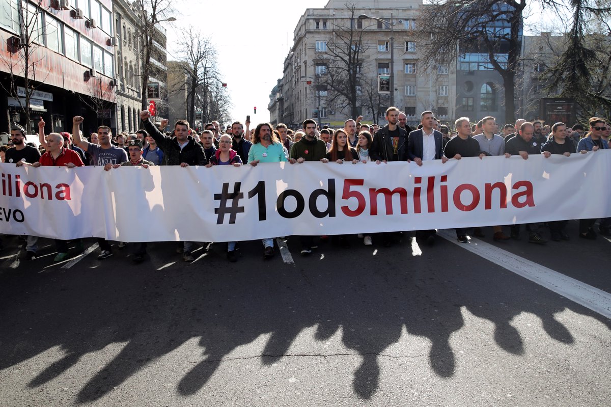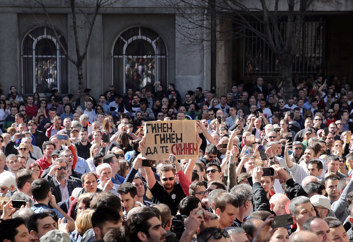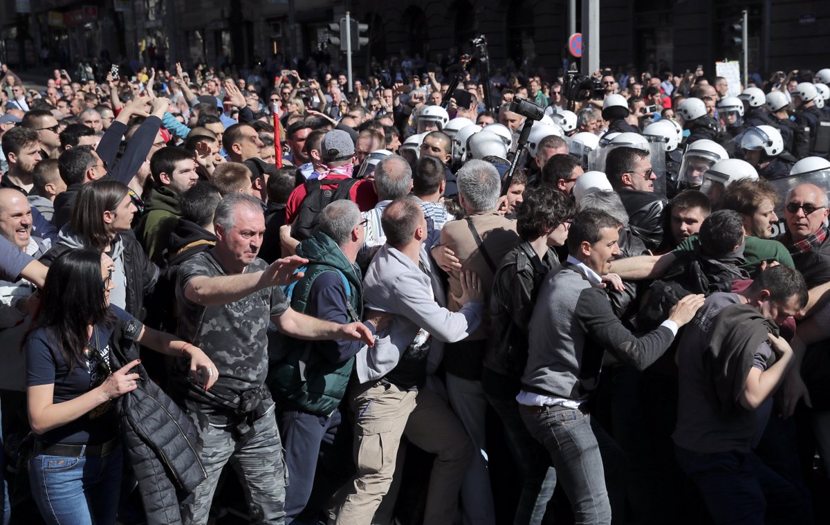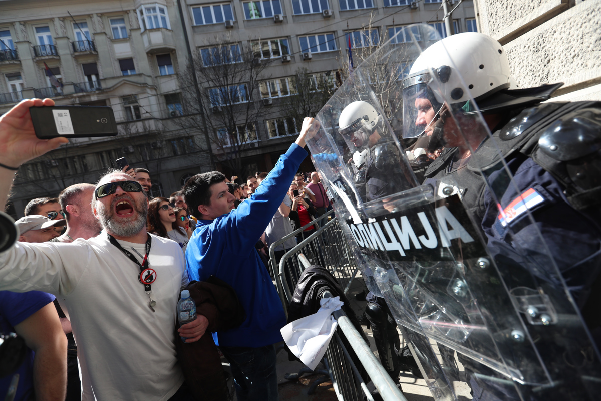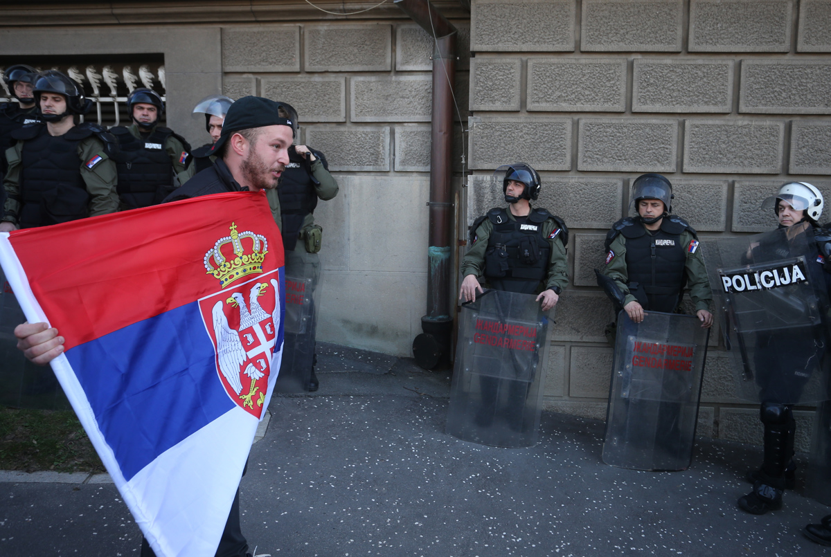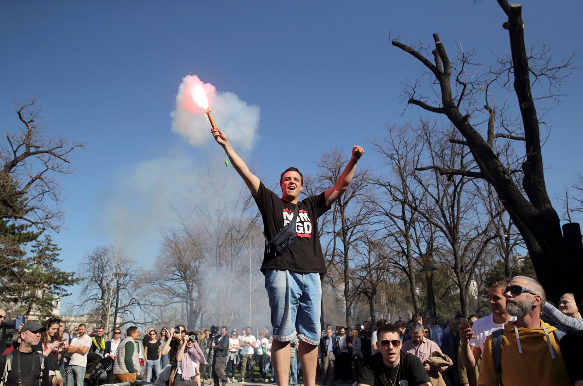 Srbija ne bo dovolila, da jo kdorkoli ogroža z nasiljem, je danes poudaril srbski predsednik Aleksandar Vučić, potem ko je v soboto zvečer skupina protestnikov nasilno vdrla v poslopje srbske javne radiotelevizije (RTS). Pred predsedniško palačo se je medtem opoldne znova zbralo več tisoč protestnikov, ki med drugim zahtevajo odstop Vučića.