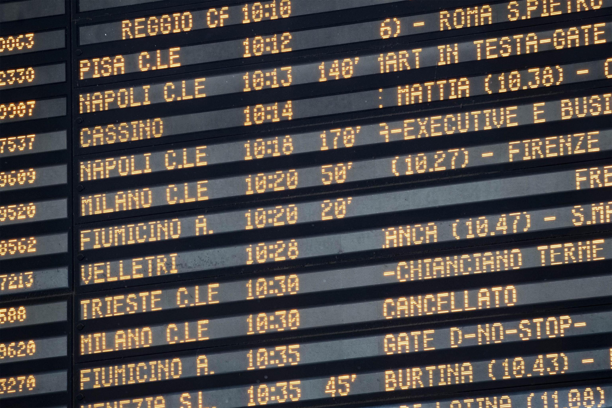 Rimska postaja Termini. Tabla z odpovedanimi linijami.