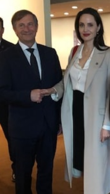 Obrambni minister Karl Erjavec se je na sedežu Združenih narodov (ZN) v New Yorku udeležil ministrskega zasedanja o mirovnih operacijah ZN na temo uniformiranih zmogljivosti. Tam je imel priložnost spoznati tudi posebno odposlanko ZN, eno najbolj znanih igralk na svetu, Angelino Jolie.