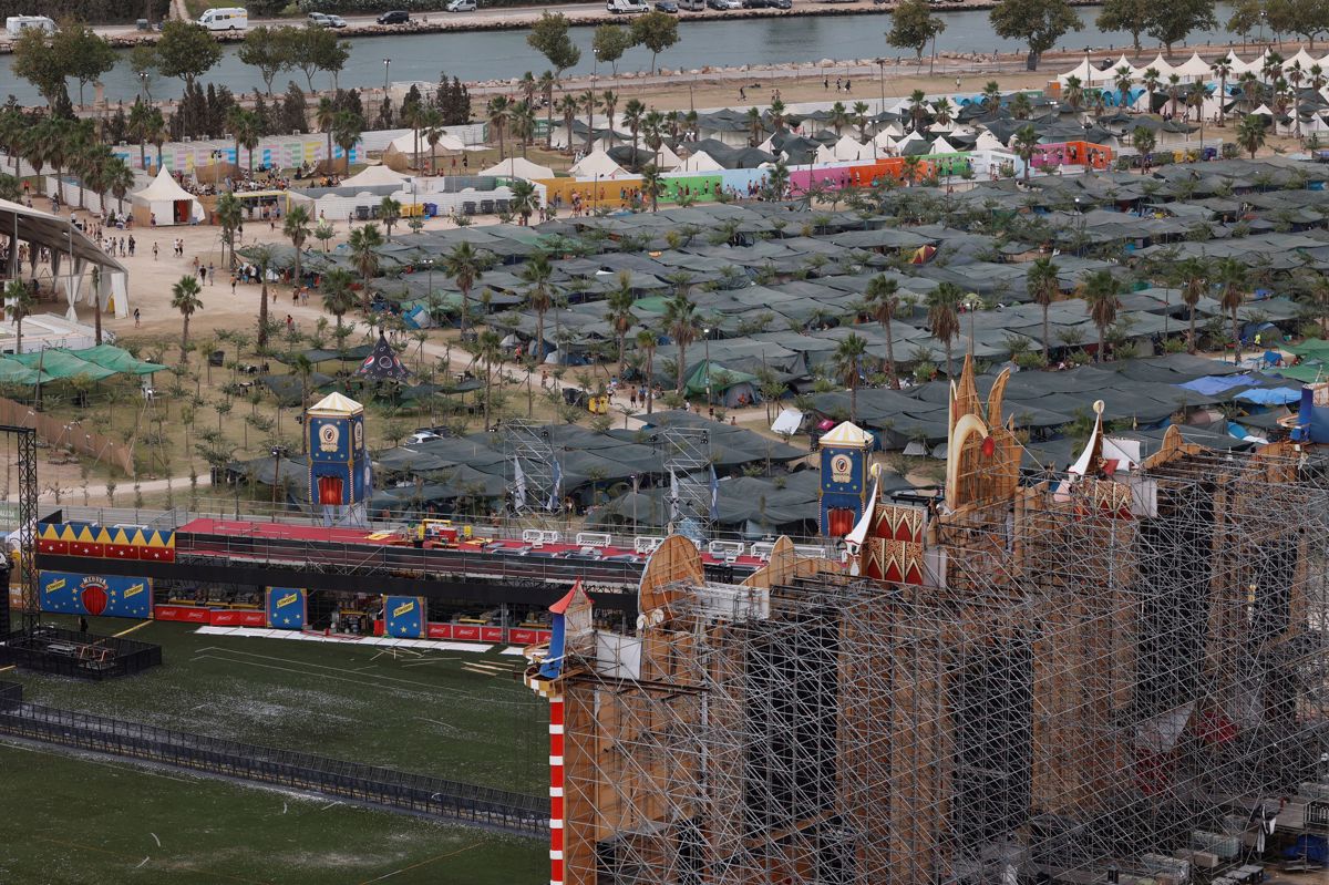 Na posnetkih, ki so bili objavljeni na družbenih medijih, je videti močan veter, ki pustoši po prizorišču, drevesa in velike konstrukcije, ki se nevarno nagibajo, in razbitine, ki letijo vsepovsod, medtem ko se ljudje trudijo obdržati svoje šotore in rešiti svoje stvari.