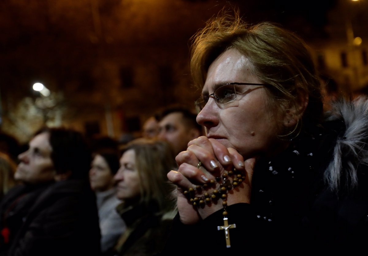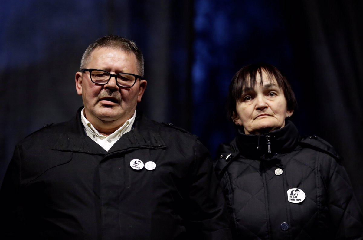 Starša ubitega preiskoavlnega novinarja Jana Kuciaka na današnjem shodu v Bratislavi.