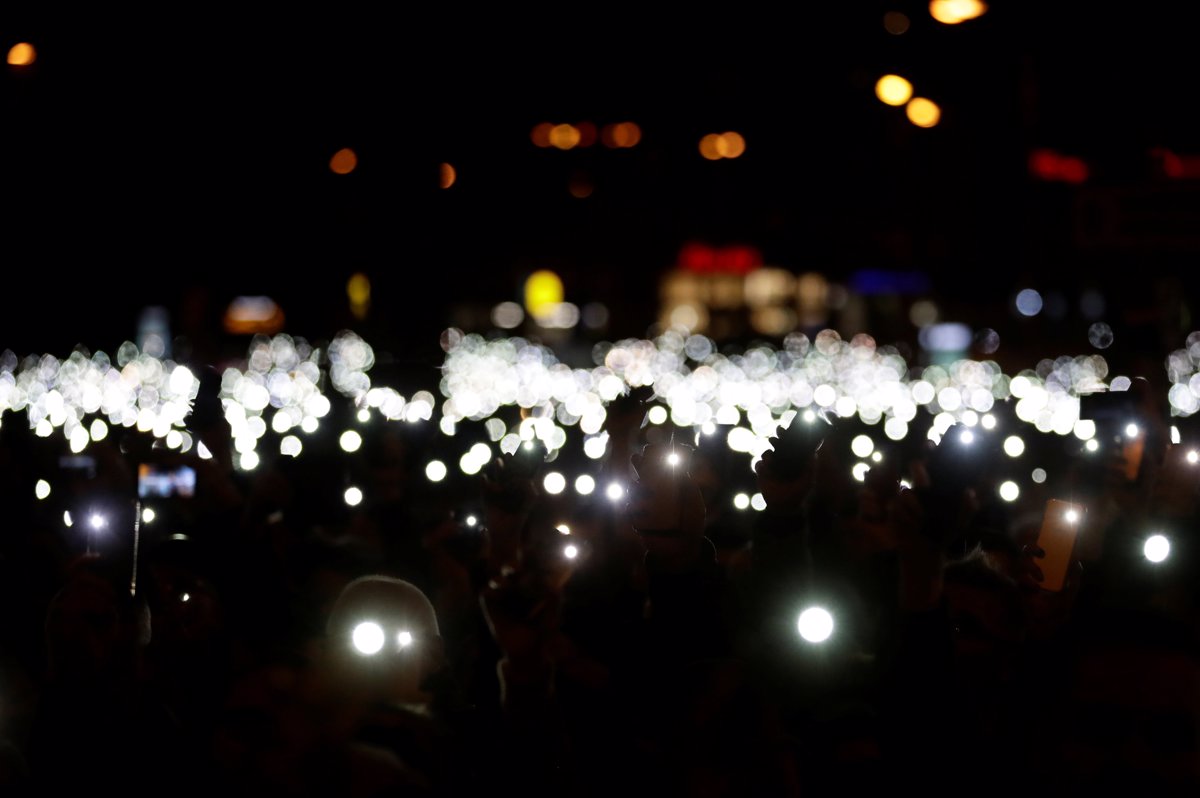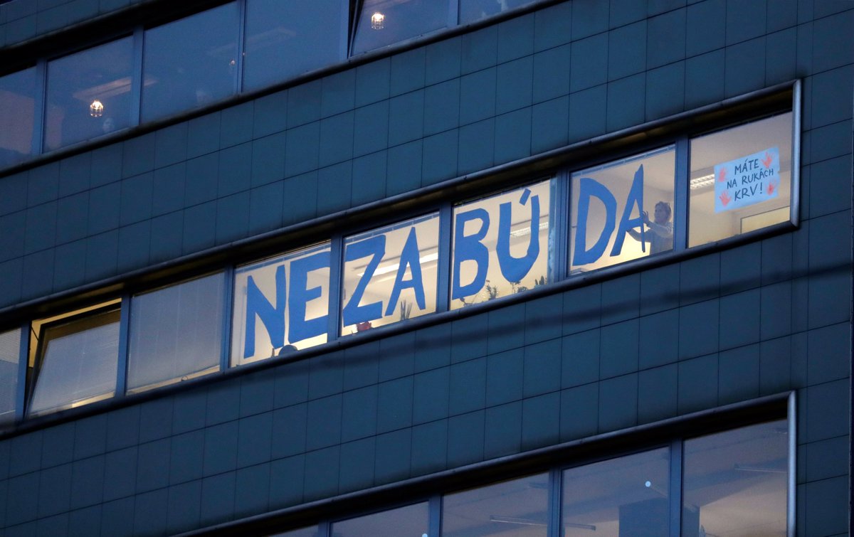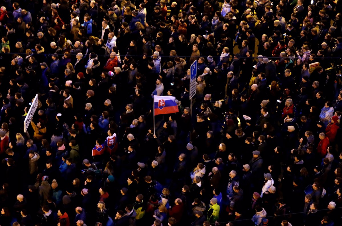 Protestniki na shodu v spomin na ubitega slovaškega novinarja Jana Kuciaka in njegovo zaročenko Martin Kušnirovo v Bratislavi.