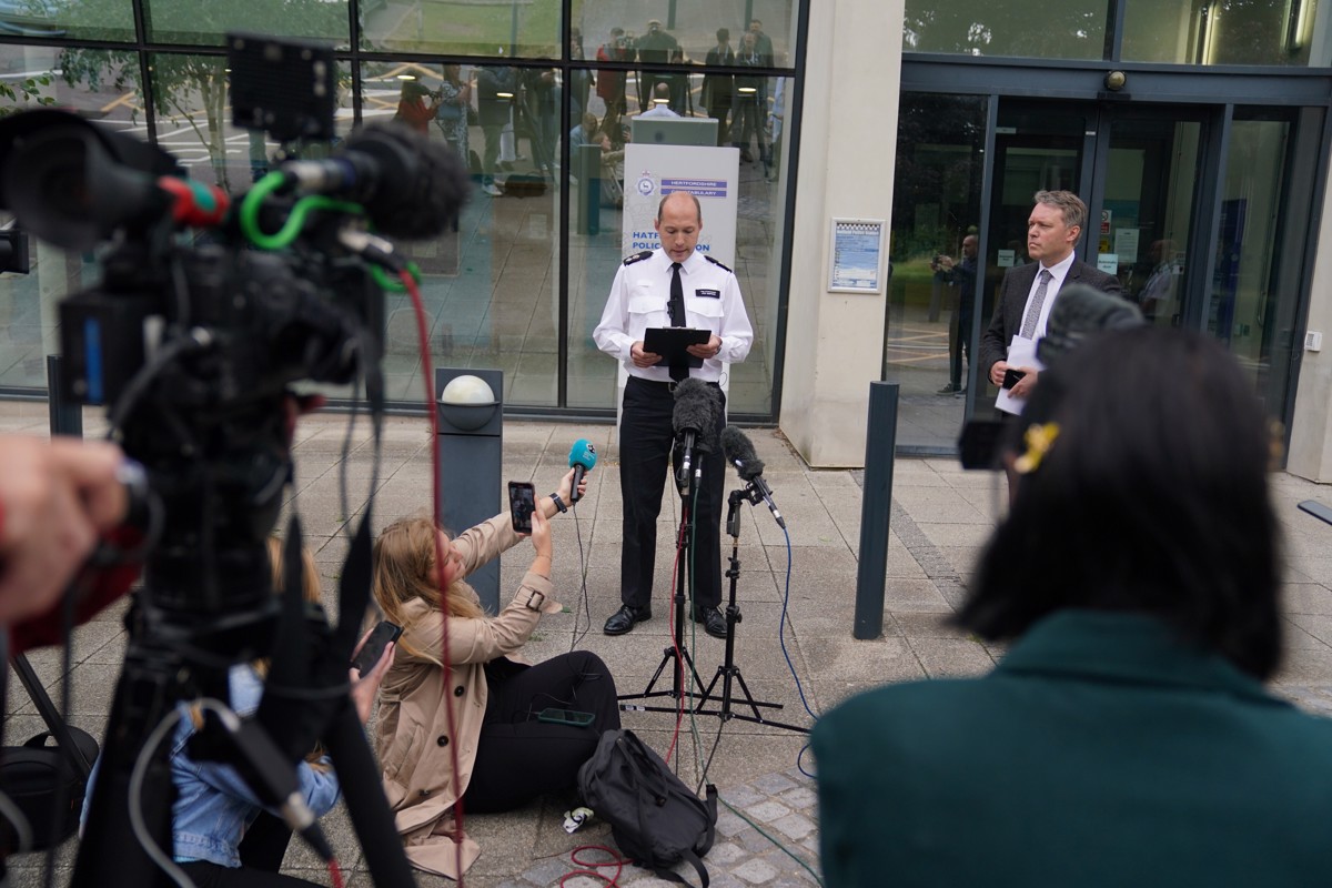 Številni oboroženi policisti so ob pomoči helikopterjev osumljenca iskali na območju Enfielda na severnem obrobju Londona, od koder prihaja. Na koncu so ga našli poškodovanega, prijeli so ga brez strelskega obračuna in mu priskrbeli zdravniško pomoč.