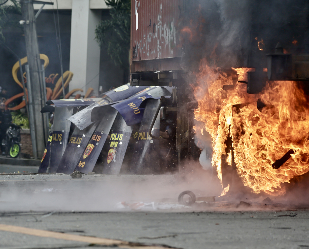 Nekaj protestnikov je iz parka zakorakalo proti predsedniški palači, a jih je ustavila policija. Skupina mlajših protestnikov, ki so nosili maske, je metala kamne na policiste in zanetila ogenj na pnevmatikah tovornjaka, s katerim jim je policija zaprla pot, poroča nemška tiskovna agencija dpa.
