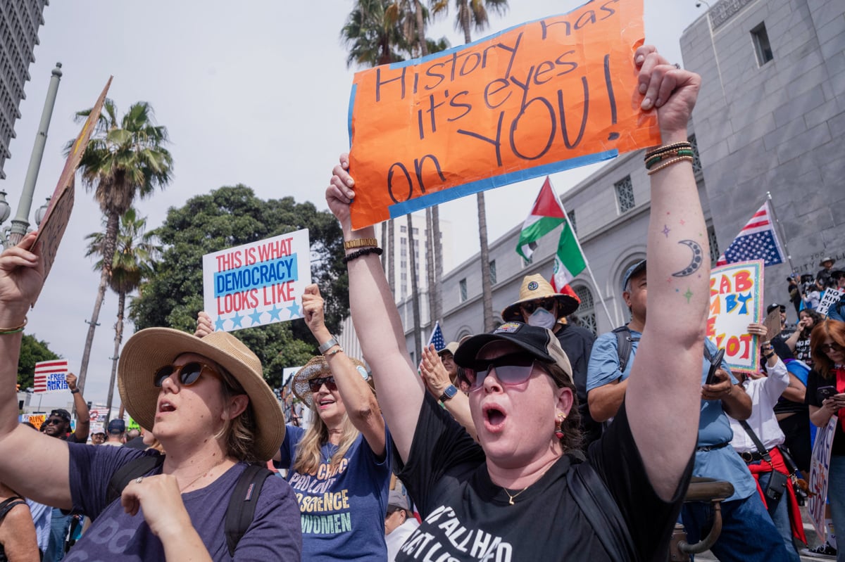 Protestniki so izrazili jezo in nasprotovanje Trumpovemu avtoritarnemu načinu vladanja, trdi priseljenski politiki in vojni z Iranom, poroča francoska tiskovna agencija AFP.