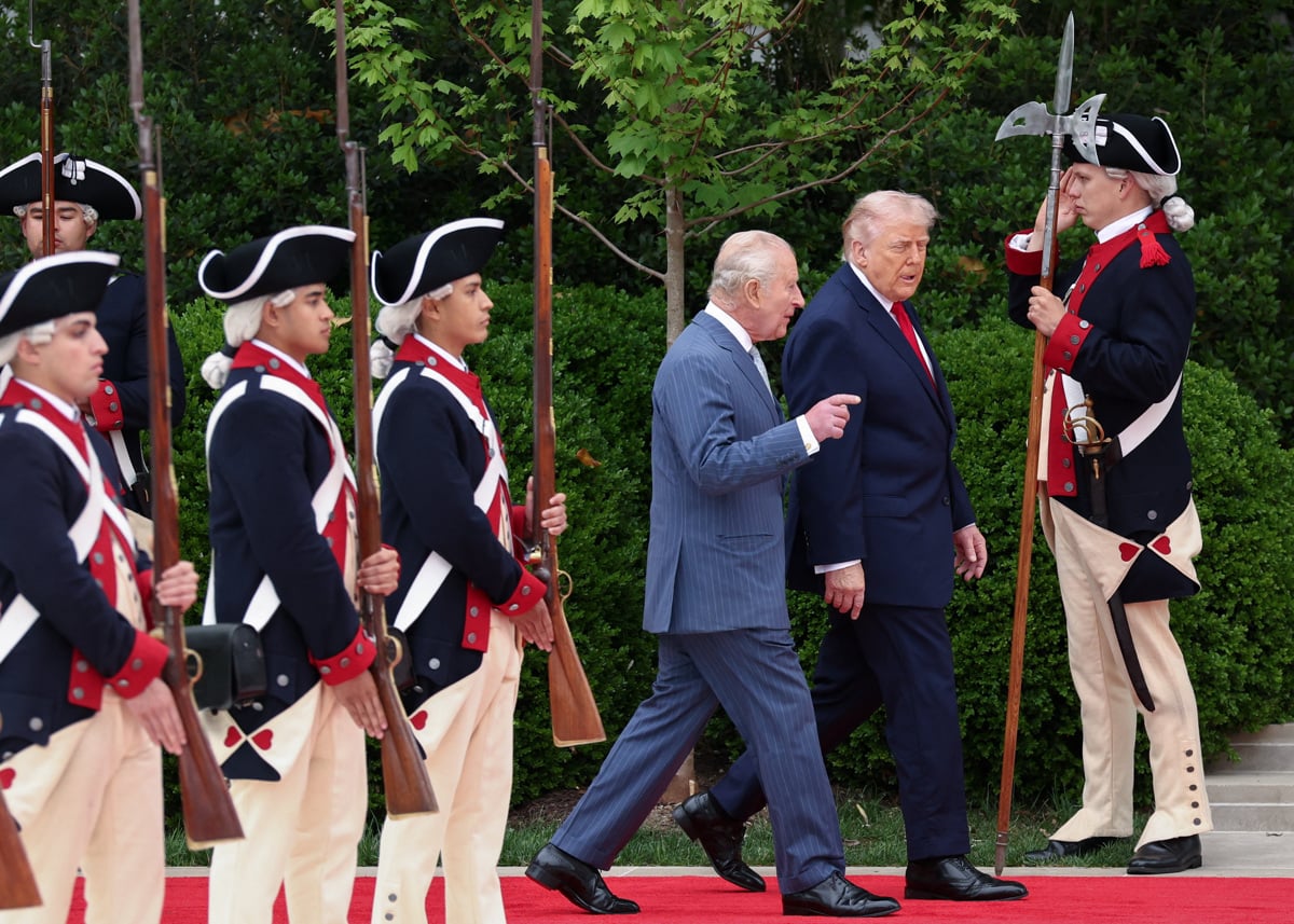 Kralj Karel III. in kraljica Camilla sta na svojem prvem državniškem obisku v ZDA, ki vključuje Washington, New York in Virginijo. Obisk v počastitev 250. obletnice osamosvojitve ZDA od britanskega imperija poteka po strelskem incidentu pred večerjo Združenja dopisnikov Bele hiše ter ob napetostih med državama zaradi vojne v Iranu.