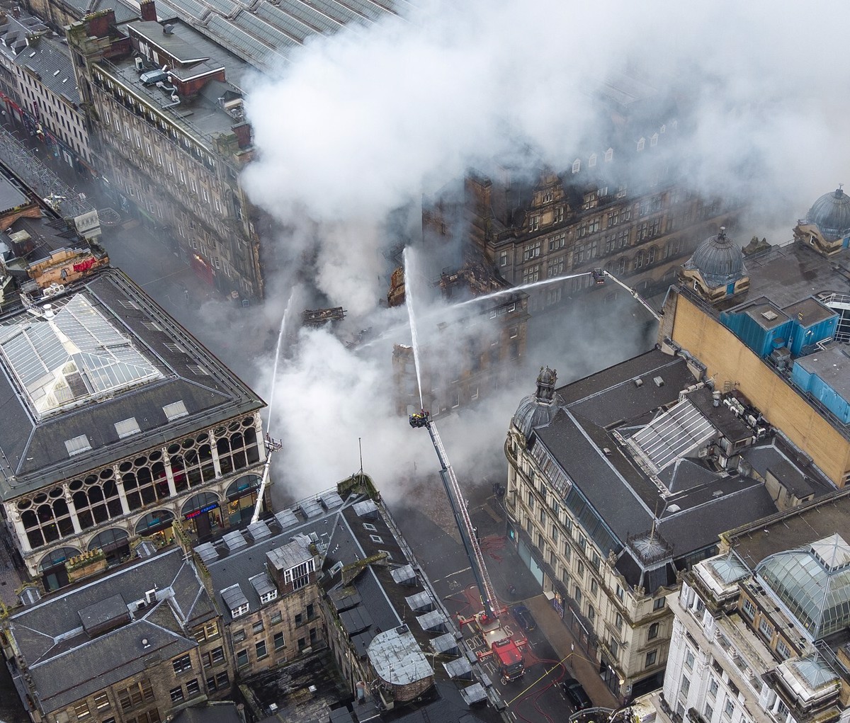 Požar je izbruhnil v trgovini z vejpi v pritličju stavbe, ki naj bi bila zgrajena sredi 19. stoletja. Štirinadstropno poslopje, ki leži ob železniški postaji, se je delno zrušilo, poškodovanih po poročanju britanskega BBC ni bilo.