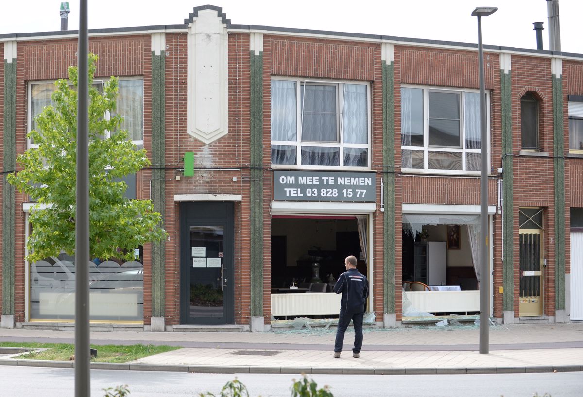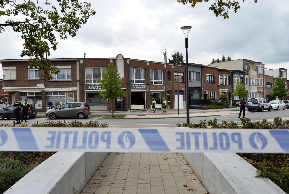 Policist na prizorišču eksplozije v Antwerpnu
