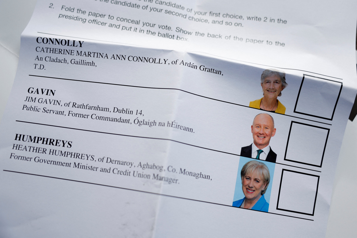 Na predsedniških volitvah na Irskem, ki so bile minuli petek, je zmagala Catherine Connolly, neodvisna poslanka, odvetnica in psihologinja. Prejela je 63 odstotkov glasov oziroma je zanjo glasovalo 914.000 Ircev. Drugouvrščena je bila Heather Humphreys iz vrst desnosredinske stranke Fine Gael. Dobila je 29 odstotkov oziroma 425.000 glasov. Na tretjem mestu je bil Jim Gavin iz republikanske stranke Fianna Faill.