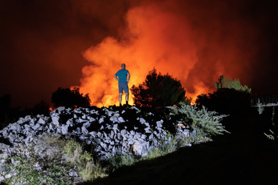 Na dalmatinskem otoku Šolta je popoldne izbruhnil velik gozdni požar. Ogenj gasi 40 gasilcev z desetimi vozili. Na pomoč pri gašenju sta po navedbah hrvaškega ministrstva za obrambo prispela tudi kanaderja in air tractor.
