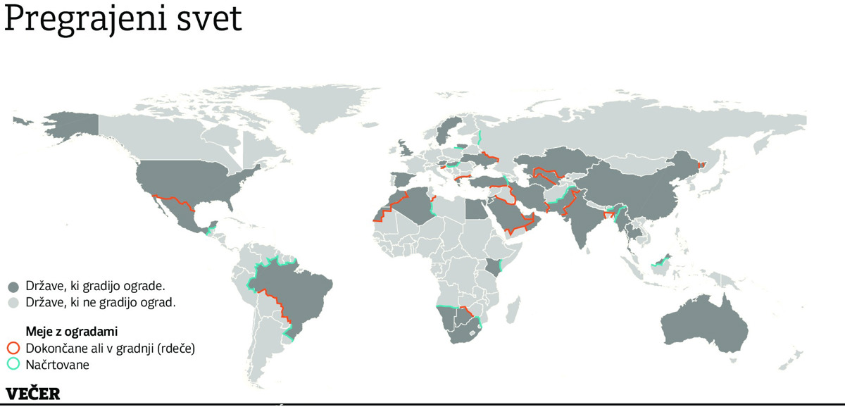 Sanje o svetu brez meja so brezupna zgodovina. Poleg stotin kilometrov pregrad vseh vrst v Evropi, na Bližnjem vzhodu in drugod se te dni največ govori o zloglasnem zidu, ki ga na vsak način hoče od vzhoda do zahoda ZDA, na 3145 kilometrov dolgi meji z Mehiko, postaviti ameriški predsednik Donald Trump. Pri tem se očitno zgleduje po svojem izraelskem prijatelju, premierju Benjaminu Netanjahuju, ki je z različnimi oblikami pregrade, dolge 700 kilometrov, skoraj povsem ogradil območje Zahodnega brega, kjer naj bi - poleg območja Gaze - nekoč nastala palestinska država. Poleg trojne žičnate ograje s 60-metrskim zaščitnim pasom so Izraelci odseke, o katerih trdijo, da preko njih prihajajo teroristi, ogradili z do osem metrov visokim betonskim zidom. Betonski zid bi najraje videl tudi Trump, zaradi denarja zanj je razglasil celo izredne razmere, a naletel na (pričakovan) odpor državljanov. Kar 16 od skupno 50 zveznih držav je namreč na sodiščih vložilo tožbe, s katerimi izpodbijajo Trumpove odločitve.