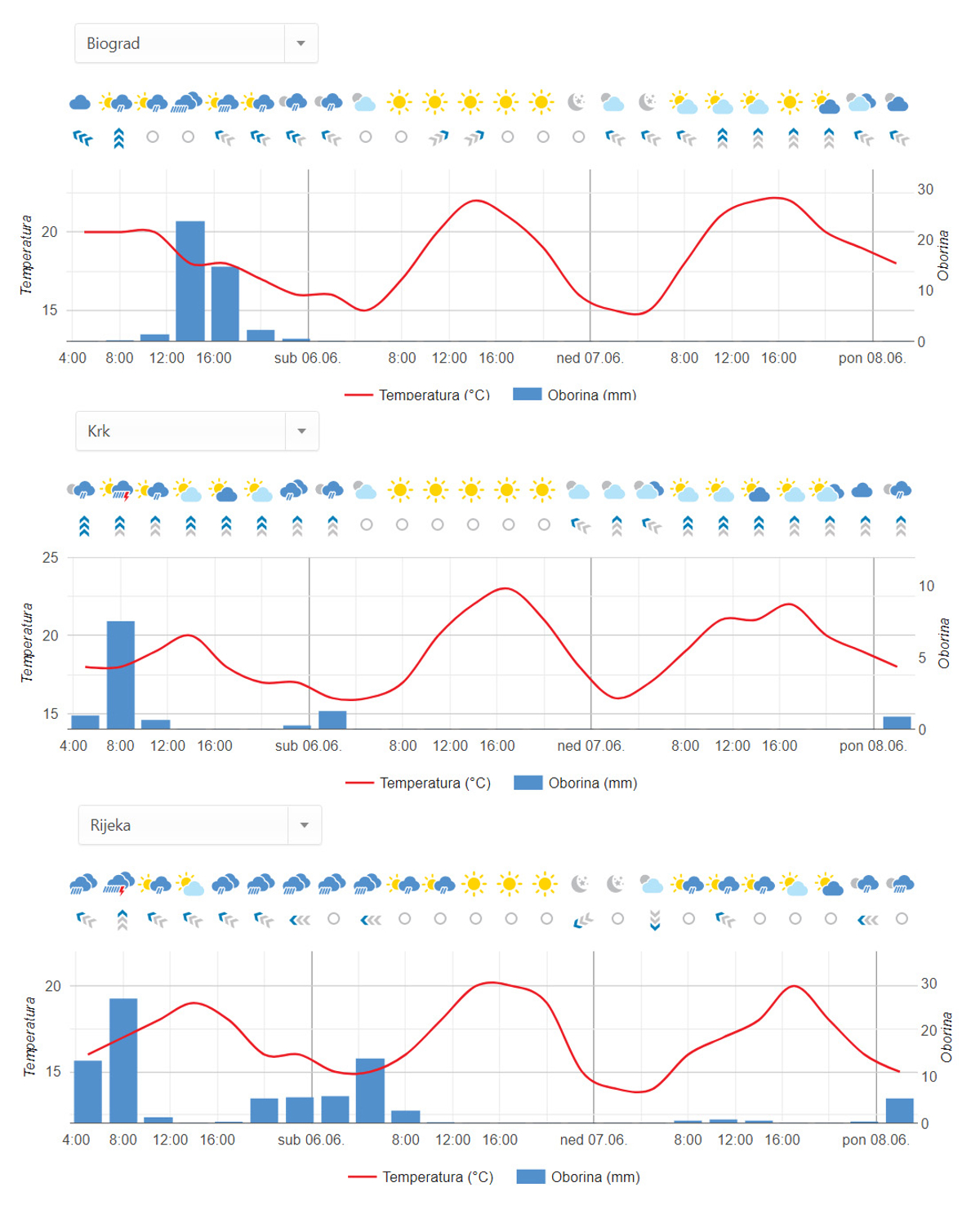 Vremenska napoved za Hrvaško.