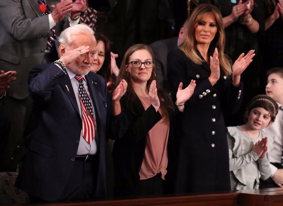 Omenil je 50. obletnico pristanka na Luni in pokazal na enega od astronavtov te odprave Buzza Aldrina, nato pa nizal statistiko gospodarskih uspehov, ki so jo kritiki nemudoma napadli kot pretiravanje.