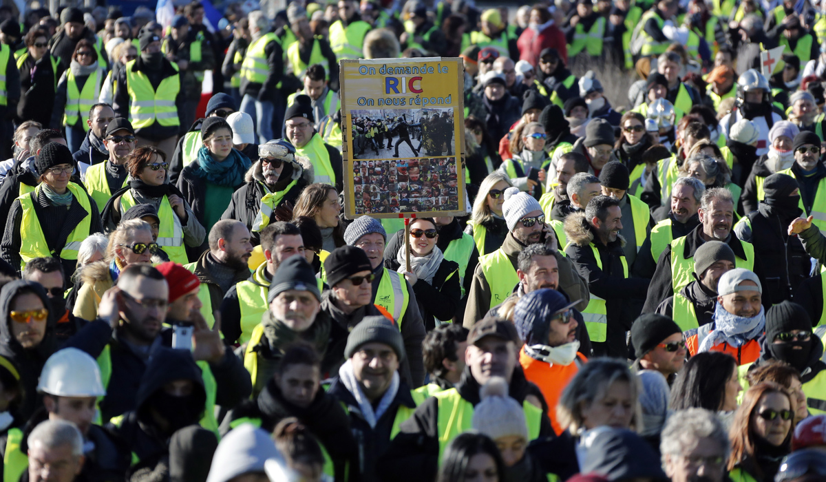 V več francoskih mestih so se danes začeli novi protesti t.i. gibanja rumenih jopičev, ki zaradi nezadovoljstva z delom vlade in predsednika Emmanuela Macrona potekajo že deveto soboto zapored. V povezavi s tem je policija v Parizu aretirala 24 protestnikov.