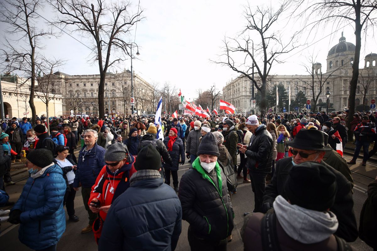 Njihov protest je bil napovedan ob 15. uri, udeleženci pa so se po poročanju avstrijske tiskovne agencije APA začeli zbirati že okoli poldneva.
