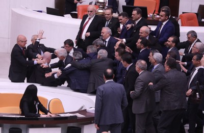 Pripomba je sprožila jezne odzive poslancev vladajoče stranke, zaradi česar je predsednik parlamenta odredil odmor. Medtem je nekdanji nogometaš in poslanec Erdoganove stranke AKP Alpay Ozalan stopil do govorniškega odra in Sika porinil na tla. V pretepu, ki je sledil, sta bila poškodovana najmanj dva opozicijska poslanca.