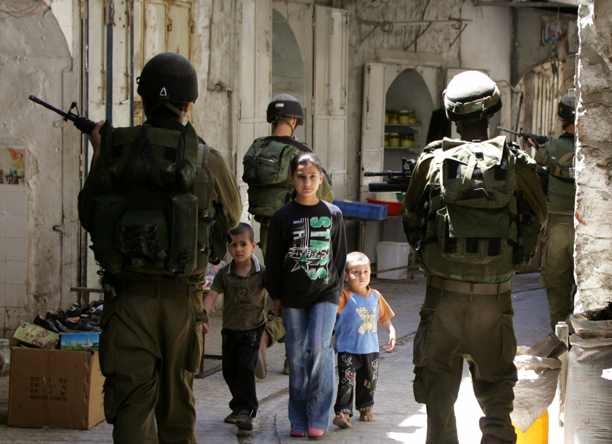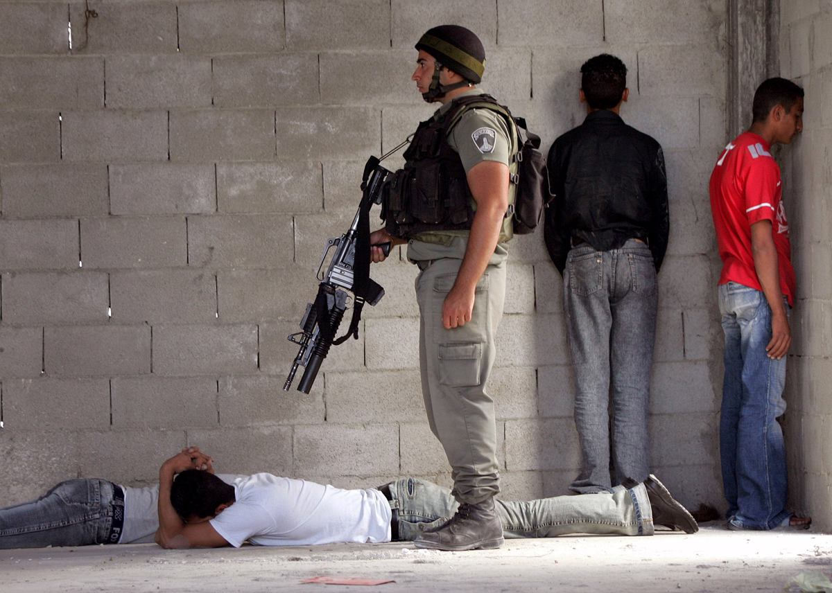 "Izrael je danes država, ki odprto trdi, da ima pravico biti rasistična. Beseda rasizem jim ni všeč, a kar zagovarjajo in politike, ki jih uresničujejo, so točno to," pravi Virginia Tilley. Na fotografiji izraelski vojaški policist, ki je "aretiral" palestinske prebivalce v palestinskem mestu Hebron na okupiranem Zahodnem bregu.