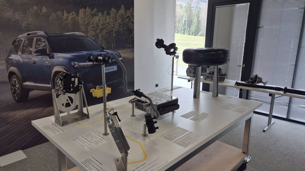 Osnovo predstavlja 1,2-litrski bencinski motor z močjo 103 kW (140 KM), ki ga podpira 23 kW (31 KM) električni motor na zadnji osi. Skupna moč sistema znaša 113 kW (154 KM). Motor z notranjim zgorevanjem je povezan s šeststopenjskim menjalnikom z dvojno sklopko, voznik pa ga lahko prvič pri Dacii upravlja tudi z obvolanskimi ročicami. Električni motor je prek dvostopenjskega prenosa povezan z zadnjo osjo, pri čemer prva prestava zagotavlja visok navor pri nizkih hitrostih, druga pa poskrbi za učinkovitost pri višjih hitrostih. Inštruktorji so nam pokazali, kje je meja vožnje v nagibu, kako učinkovito deluje razporeditev navora in kako deluje sistem nadzorovanega spusta. Omeniti velja še to, da je energijo elektromotorju na zadnji osi zagotavlja 16-kilogramska baterija pod sprednjim sedežem s kapaciteto 0,84 kWh.