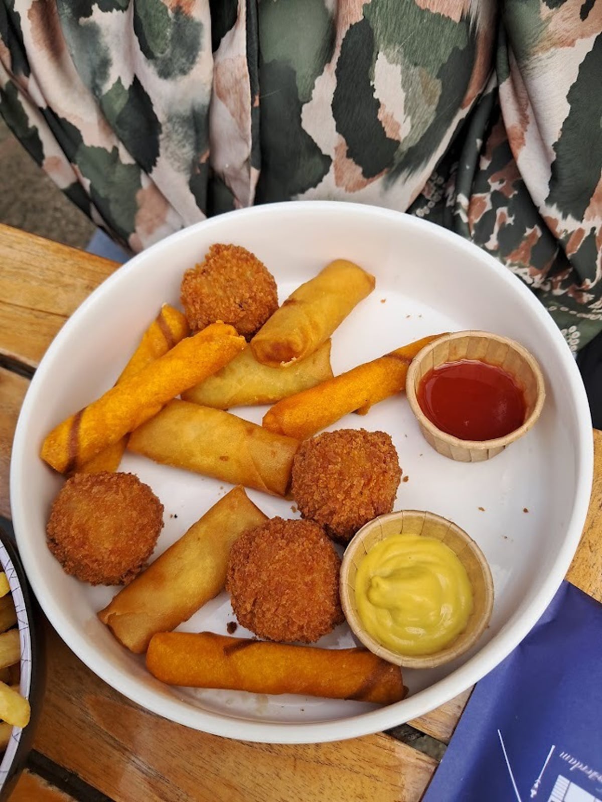 Kot je Amsterdam raj za kolesarje, je tudi raj za pešce. S tem da morajo pešci paziti na kolesarje in ne obratno. In ko si dva ali tri krat oddahneš, da te kolesar ni zadel, je skrajni čas za počitek. Za kozarec piva in bitterballen, obvezen prigrizek, ko se znajdeš na Nizozemskem. Gre za ocvrte kroglice z mesnim nadevom in dodatkom sira, zraven seveda obvezna porcija pomfrita. Tega postrežejo vedno in povsod, menda samo k sladicam ne. Če sta pri mizi dva, je naročilo lažje, naročiš mešanico prigrizkov. Drugi del na pladnju so majhni spomladanski zvitki z zelenjavnim ali mesnim nadevom, ki imajo korenine v Indoneziji, kjer so v preteklosti Nizozemci gospodarili. Navsezadnje so bili prav Nizozemci med najmočnejšimi trgovci z začimbami z Daljnega vzhoda, kar se je kasneje odražalo tudi v nekaterih jedeh.