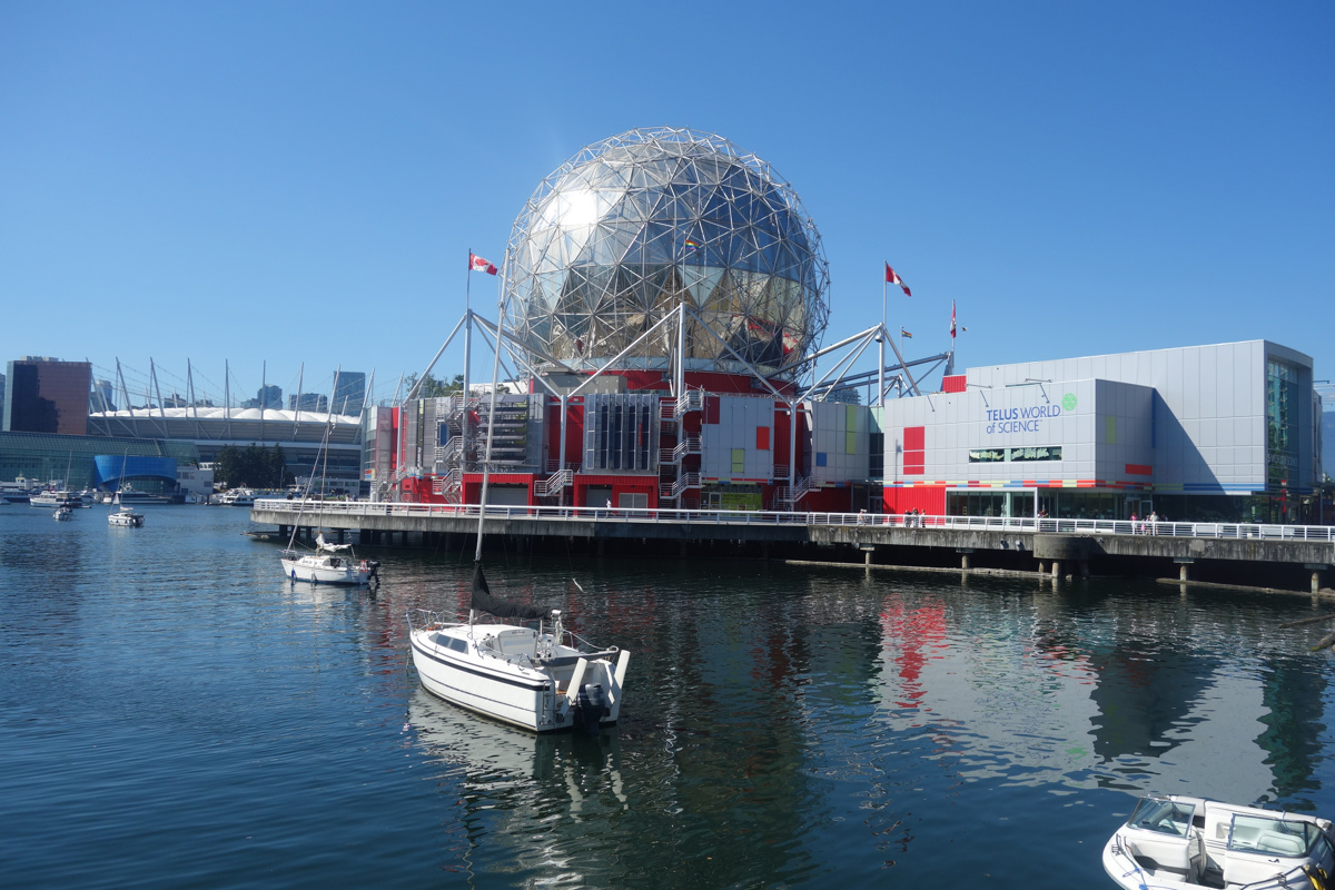 Kolesarjenje nas pripelje vse do kupolaste zgradbe iz časa svetovne razstave Expo 1986, v kateri domuje Svet znanosti oziroma Science World. Fizika z eksperimenti še mene, čistokrvno družboslovko, povsem očara; nihanje, vzvodi, elektrika in poraba vode, smeti in reciklaža ter malo medicine, kjer z vlečenjem vrvi ugotoviš dolžino črevesja ali pa si izmeriš srčni utrip, ki ga s pomočjo bobna slišijo vsi naokrog, so interaktivno zasnovana znanstvena področja, v katerih uživajo otroci vseh starosti, še bolj pa njihovi starši, se mi zdi.