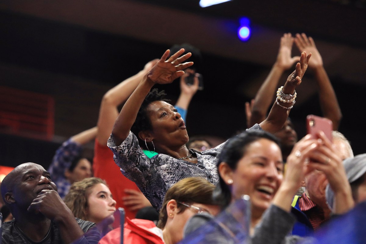 Razigrani navijači na košarkarškem spektaklu