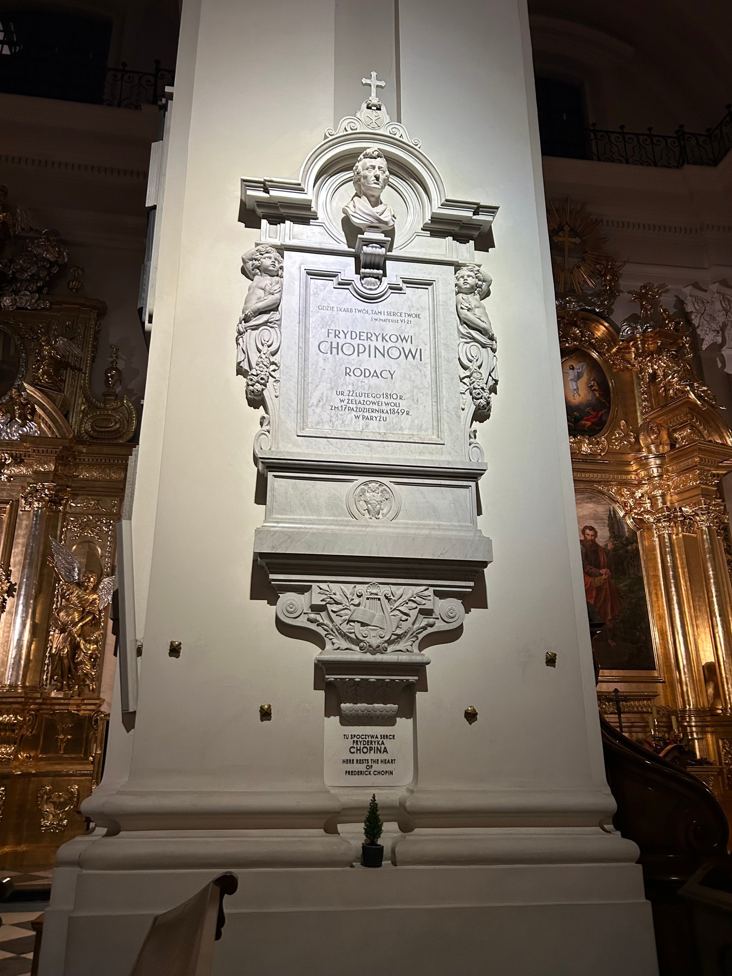 O Chopinu je mogoče domala vse izvedeti v njegovem muzeju v palači Ostrogski, ki je letos zaradi obnove zaprta. Škoda, najbrž reče človek, ki obstane pred zaprtimi vrati, a nič zato. Literarni turizem se mi od nekdaj zdi najbolj zanimiva dogodivščina, zato vzamem v roke biografski roman Frédéric Chopin: Burno življenje, ki ga je leta 1961 napisal francoski pisatelj Jean Rousselot (slovenski prevod je tri leta mlajši), in se po tej knjigi podam po njegovih poteh. Tako si med drugim lažje predstavljam, kje je čudežni deček hodil v šolo, kje se je družil z vrstniki, kje je javno nastopal. Izvem tudi, da je družina Chopin – oče je bil učitelj francoščine – nekoč stanovala v Saksonski palači, ki so jo med drugo svetovno vojno Nemci porušili do tal; ohranil se je le fragment arkad, pod katerimi je danes grob neznanega vojaka z večnim plamenom in častno stražo … Če pa še vedno stojite pred zaprtimi vrati muzejske palače, se ozrite vsaj naokoli: znašli ste se v chopinovskem predelu mesta. Lučaj stran je Narodni inštitut Fryderyka Chopina, celo motel, poimenovan po njem in opremljen v glasbenem slogu. Za povrhu je po mestu razporejenih še petnajst interaktivnih klopi iz črnega granita, na katerih pritisnete gumb in zaigral vam bo Chopin, najsi nokturno ali valček, morda mazurko. Če poskenirate QR-kodo, izveste še marsikaj zanimivega o glasbenikovem življenju, na klopi pa je tudi zemljevid z označenimi preostalimi postanki; povabilo na samostojni sprehod s krasno zvočno kuliso. Zagotovo ne boste mogli mimo cerkve Svetega Križa, v kateri je, kakor je Chopin po svoje kar sam poskrbel za mit, shranjeno njegovo srce. Ker se je bal, da ga bodo v Franciji živega pokopali, je zahteval, da mu izrežejo srce in to odnesejo v domovino, na Poljsko; to je potem storila njegova sestra Ludwika, ki ga je v kristalnem kozarcu, napolnjenem s konjakom, odpeljala v Varšavo, kjer so ga vzidali v steber omenjene baročne cerkve. Telo so pokopali na pariškem pokopališču Père-Lachaise, kamor na njegov grob od nekdaj romajo občudovalci … Vse to in še mnogo več vam lahko kajpada pove tudi lokalni vodnik, ki vas vodi po Chopinovi Varšavi: med drugim postane pred Radziwiłłovo oziroma današnjo predsedniško palačo, v kateri je imel Chopin pri komaj osmih letih prvi javni koncert, pa še pred palačama Kazimierzowski in Czapski, v katerih je stanovala njegova družina …