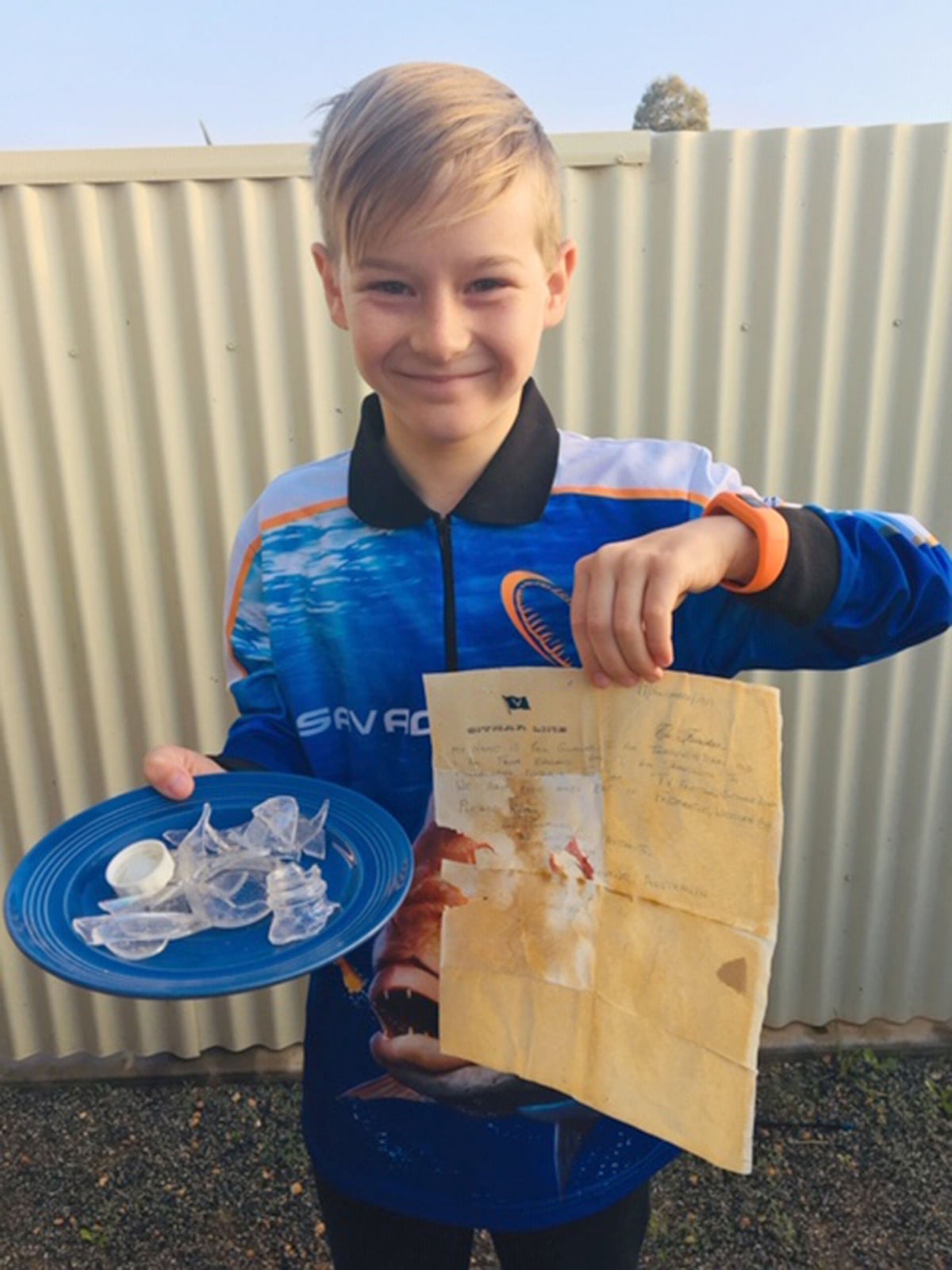 Oče Paul Elliot in njegov sin Jyah sta za lokalni radio ABC povedala, da sta steklenico našla med ribarjenjem. Avtor 50 let starega sporočila naj bi bil Britanec Paul Gilmore, ki je imel 13 let, ko je spisal sporočilo. Steklenico je v vodo vrgel med potovanjem z ladjo iz Velike Britanije do Melbourna.