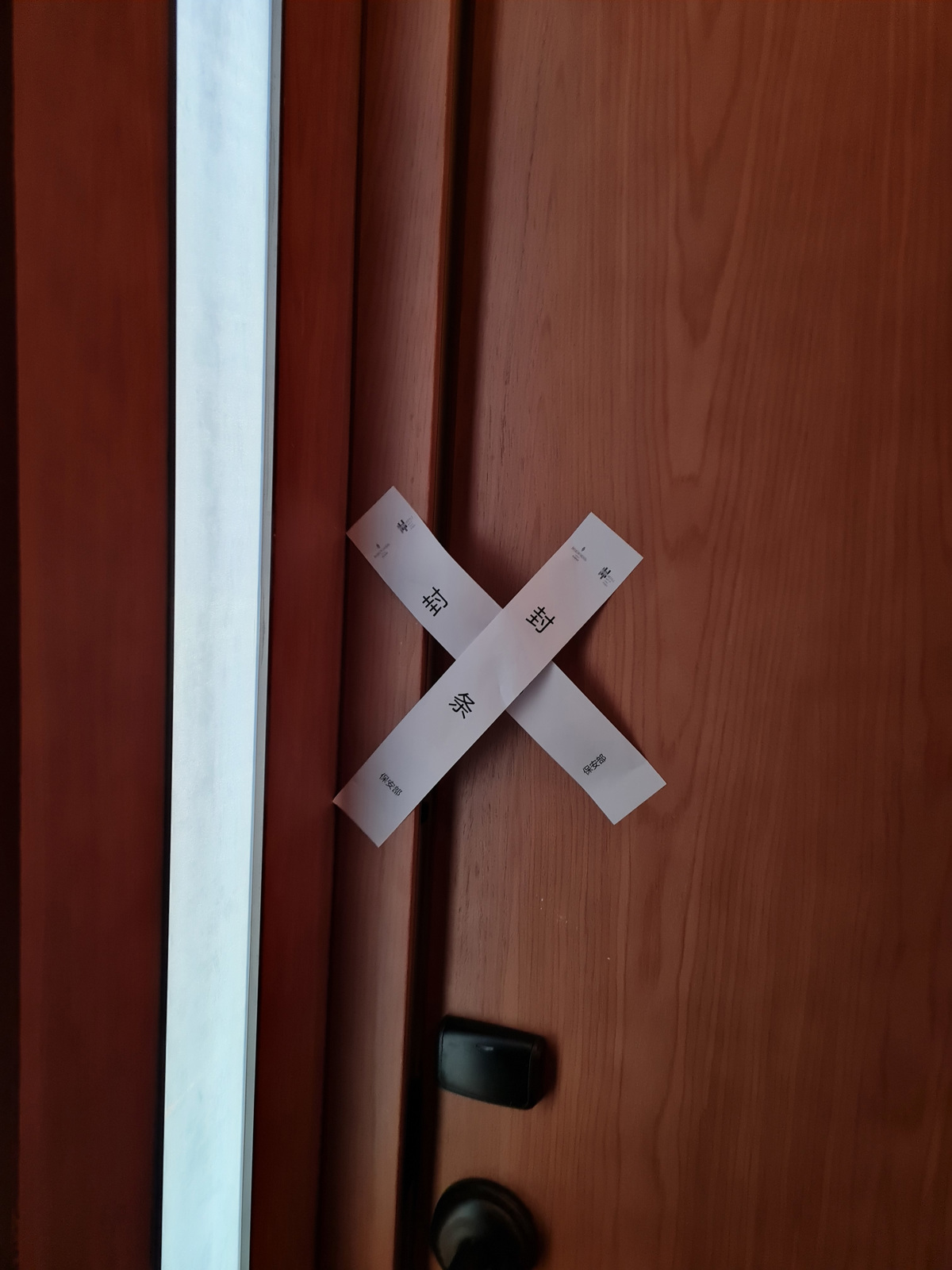Vesten Kitajec, zadolžen za urejanje prometa, me je poiskal. Tako spet nisem sedel na tisti ogrevani masažni stol. No, isti večer so na poti do sobe mojo pozornost privabila z lepilnim trakom zaplombirana vrata ene od sob. Tukaj v zvezi s širitvijo virusa, ki povzroča covid, vlada precejšnja konspirativnost. Najprej si testiran. Potem te pokličejo po telefonu. Pet minut zatem beli skafandri potrkajo na vrata, ti v podpis pomolijo formular ... Takrat sta aktualni samo še dve možnosti: ali si kužen ali pa si bil v stiku s kom, ki je koviden. V prvem primeru te odpeljejo v Yanquing v izolacijo. Če si zdrav, sledi nekaj dni izolacije. In zdi se mi, da s križi na vratih označujejo stanovalce, ki so bili v tesnem stiku z obolelimi, potencialno nove bolnike.