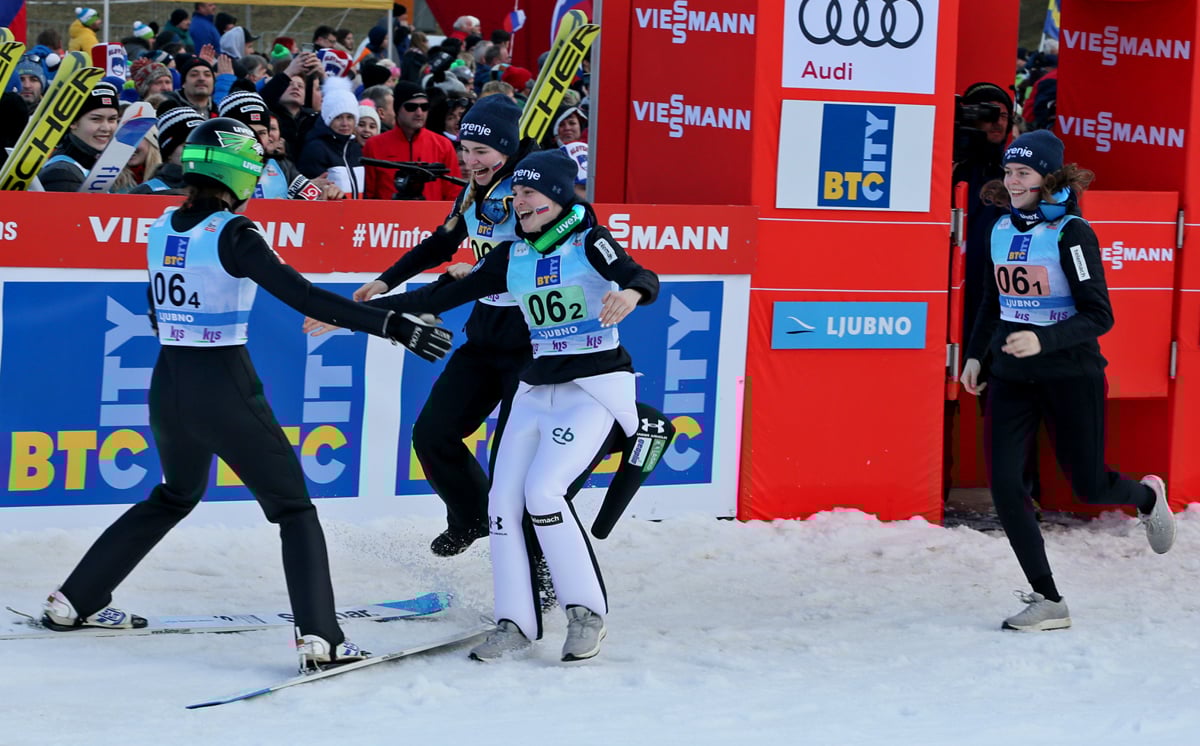 Navijači so glasno podprli Katro Komar, ki se je kot prva Slovenka pognala po 94 metrov dolgi skakalnici in pristala pri 78 metrih ter si priborila nastop med trideset najboljših. Preboj je uspel še Jerneji Brecl in Urši Bogataj, s stopničkami junakinji petkove preizkušnje, ki je v prvi seriji pristala pri 79,5 metra, a s tem ni bila prav zadovoljna: "Občutki niso ravno prav dobri, malo ga biksa še vreme." Najboljša po prvi seriji je bila Nika Križnar, ki je že v soboto s 93,5 metra postavila daljavo tekme in samozavestno pričakovala včerajšnjo posamično preizkušnjo. "Sem se veselila tekme, ampak razmere so bile podivjane. Niso bile poštene za vse, videlo se je, kako je lahko šla daleč tista, ki je imela dober veter, druge so se trudile, delale dobre skoke, a zaostale," je bila Križnarjeva kritična po prvem skoku. V finalu jo je poneslo do 83,5 metra, s čimer je pridobila mesto in kot četrtouvrščena dodala še en izjemen rezultat tega skakalnega praznika. Le malo je zmanjkalo, da bi bile Slovenke vse dni na stopničkah.